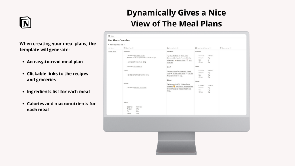 - Includes an easy-to-use calorie & macronutrient calculator which links to the meal planning